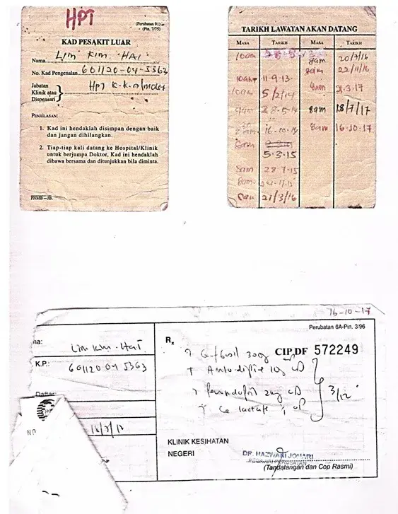 vii) 1 copy of Lim Kim Hai medical card and given medicine.