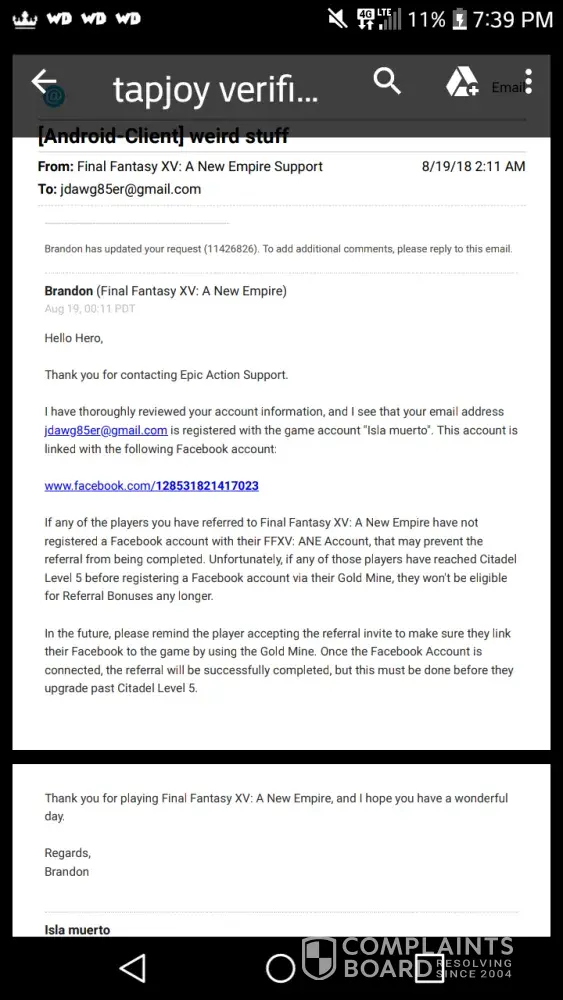 I still have more do you need more I can start breaking out my classified emails with epic and then show you the log between myself my Lawyer and the Google rep whom listened very diligently before his team found what they where looking for. Thats when they themselves flagged you.. You can still just honor you word or you can just not. Either way Tapjoy I dont work I dont have to I just play all day what about you all? Do you guys even work or just steal digital currency Oo thats the thing she said that is was a scam /scheme to appropriate digital currency with the clear and blatant intentions of never honoring your end.