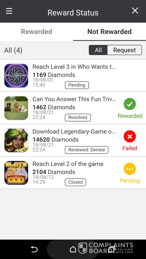 I have been having trouble receiving rewards from the design home app. Multiple times I have contacted tapjoy, provided proof that I DID NOT receive the rewards, and had a response from them saying that I have been provided with the rewards when i HAVE NOT. I am getting very frustrated. Usually I have no issues, but lately no matter what offer I complete I don't get the rewards, and the tapjoy customer service assistants are denying me of those rewards unfairly. I am completing everything correctly, sending proof as requested in the form of screenshots from the app open on my device, and still am not being given what I am due. The last correspondence spanned over the last 2 days - I downloaded and completed the offer to reach level 3 on 'who wants to be a millionaire' - reaching level 4, so playing the game longer than necessary - and after a few hours had not received the rewards. I contacted tapjoy by going to reward status, not rewarded, and clicking on the offer (case [protected]) to submit a report. I was told i HAD been given the rewards which was incorrect. I sent more proof that i HAD NOT been given the rewards and got the same response. I should have received 1169 diamonds for this offer - and I would like to be given those diamonds. Another issue I have has is with the offer to download and play 'legendary game of heroes' until i reached level 20 on the main campaign. I completed this offer and should have received 14620 diamonds for this, but the status says reward attempt failed. I again contacted tapjoy customer support (case [protected]) and provided ample proof that i completed the offer, but my request was denied. I did everything I was meant to do and would like to be given my 14620 diamonds! I am very, very frustrated!