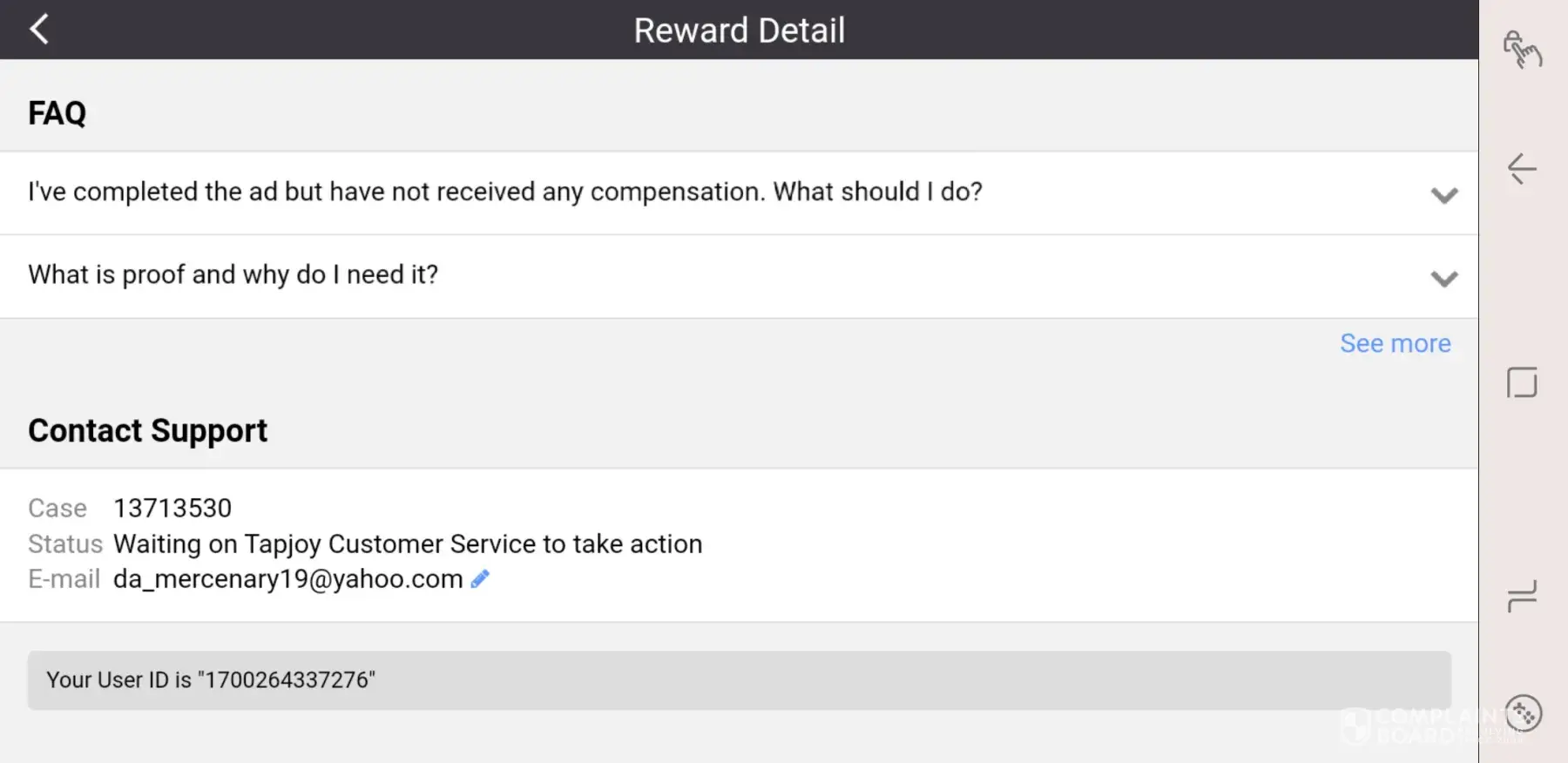 I completed an offer. The tapjoy app said I didn't. I have the email to prove it. My email is [protected]@gmail.com I have tried to contact support through the app but it is conveniently down right now and the reward will probably be removed from the app before it's up. I took screen shots of it though. I have tried everything Tapjoy sites tell me to do but nothing has worked. I also see that there are a bunch of complaints about this site on social media and the internet.