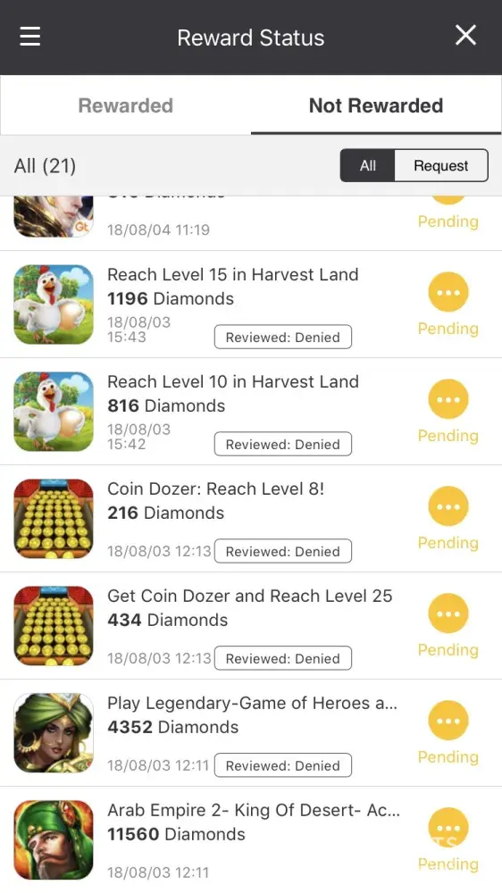 I have the Covet Fashion app installed on my Android phone. In order to earn game diamonds, I was required to complete an offer on TapJoy. The said offer required me to download a certain app on my phone and run it.On 17, August 2018, I completed the said offer in exchange of about 120 Covet Fashion diamonds. But, despite completing the said offer, I wasn't credited the diamonds and I demand that they be credited immediately.