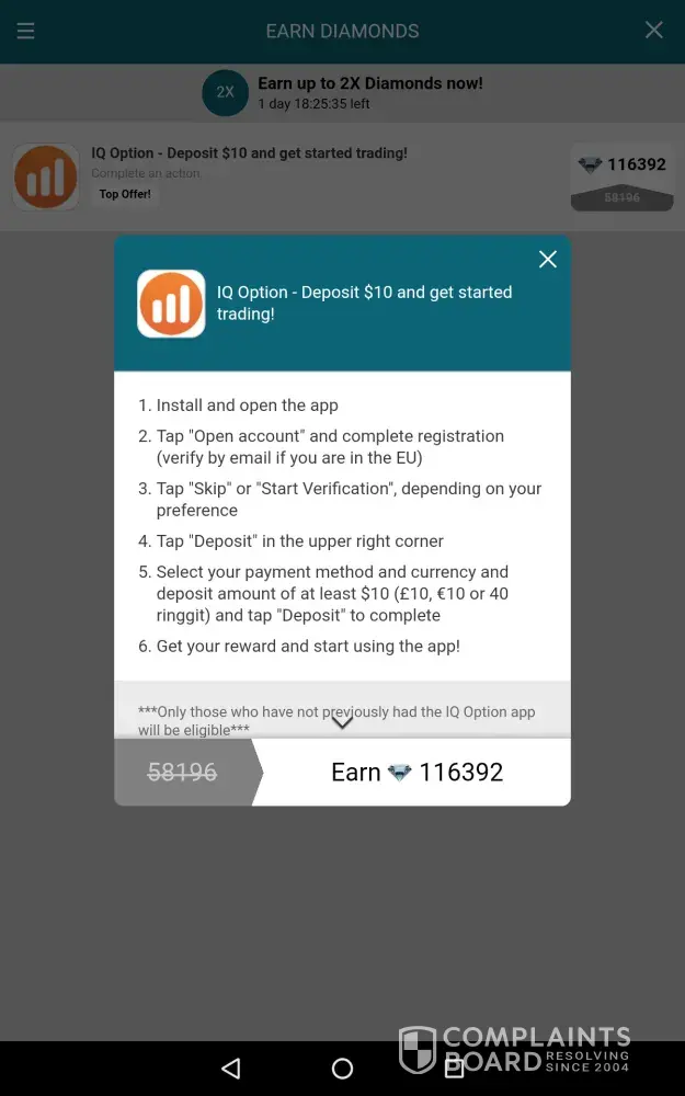 "Downloading the application from other than the promotional link will not associate the Device ID with the application. Also using different devices (phone/tablet) may interfere with the association of the correct device ID, or even if you are using only one device, this ID can be reset different times for different reasons initiated by the user or device. (Including but not limited to software/firmware updates accepted in the middle of completing the offer)."