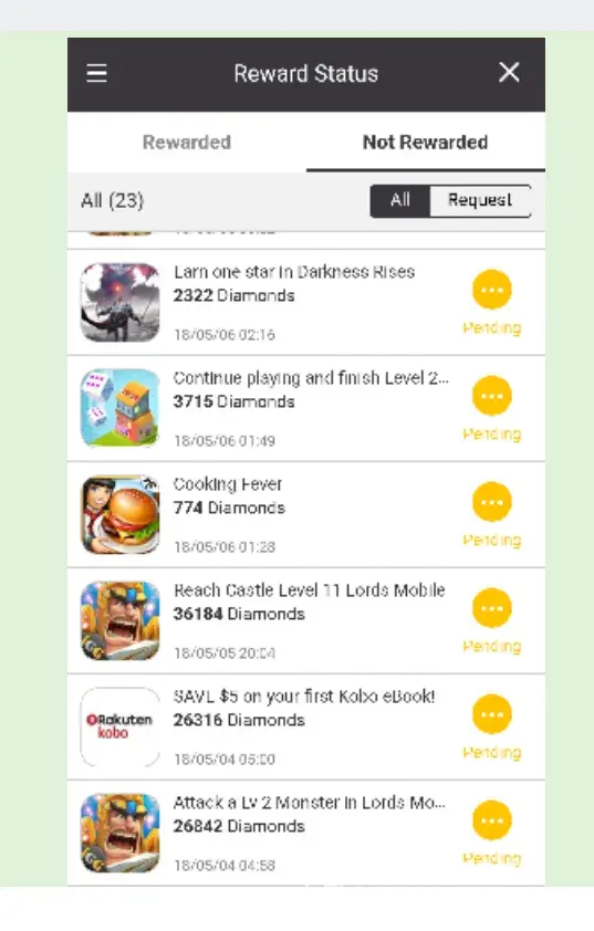I have lodged numerous complaints since may 2018 regarding tapjoy offers that have been completed by me. The total amount of diamonds owed to me since may 2018, is 51 123. These are some of the offers that I have completed (to the letter and supplied proof!), but still waiting to be compensated for: