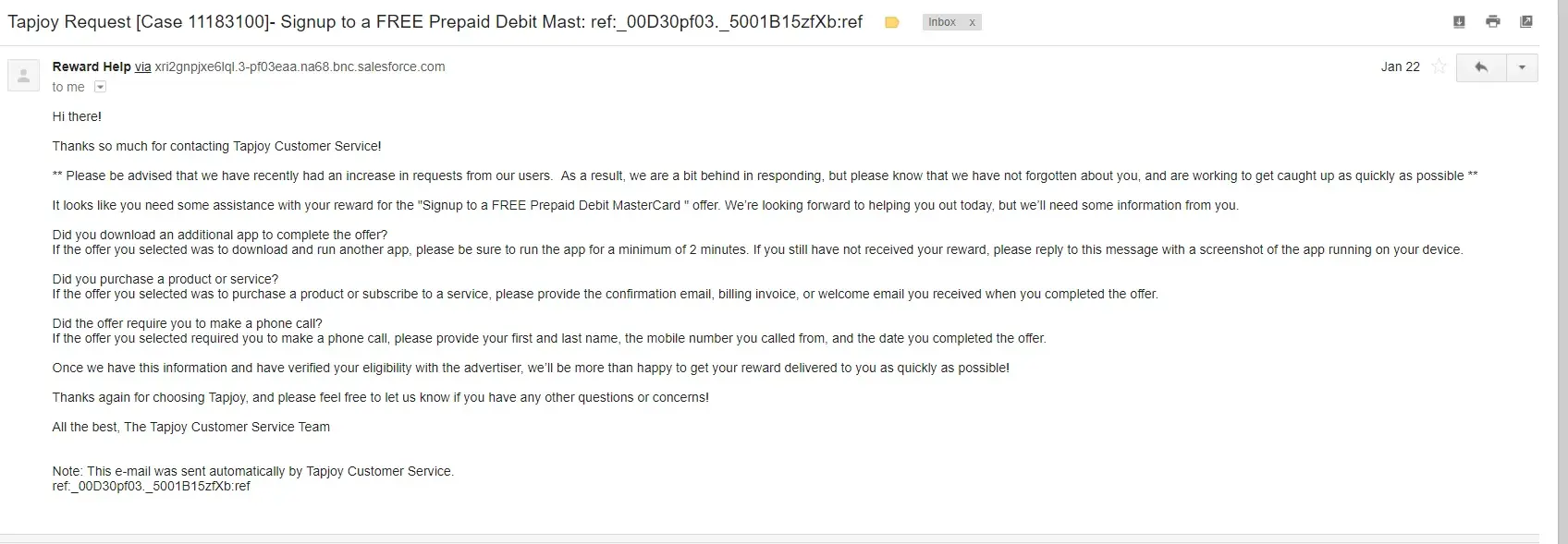 Tapjoy Request [Case [protected]]- Sign up to a FREE Prepaid Debit Mast: ref:_00D30pf03._5001B15zfXb:ref