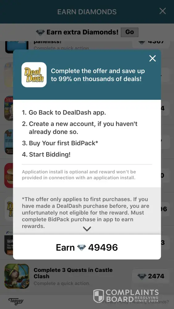 They told me the game developer of the OTHER game that I played to get the coins on QUID wouldn't approve my request. Why do they have to approve it in the first place? They had a special on Quid for 6 hours for double or triple coins on their offers, now I know they're all just a scam and a waste of time. They sent me an email and I emailed them back, and they never even responded to me. Terrible customer service, never using their free diamond or coin feature again. I used to use it all the time on another app, but I will NEVER use it again. They only give you diamonds/coins when they want you to, so don't use them if you're expecting a reward every time. Deleted Quid and no longer using tapjoy.
