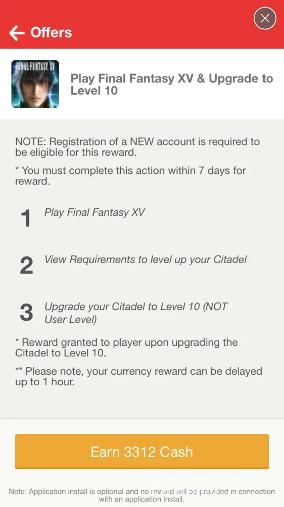 I completed the offer on tap joy and still haven't received my reward. The offer said to reach level 10 citadel on final fantasy for 2060 cash credits on wwe champion free puzzle RPG