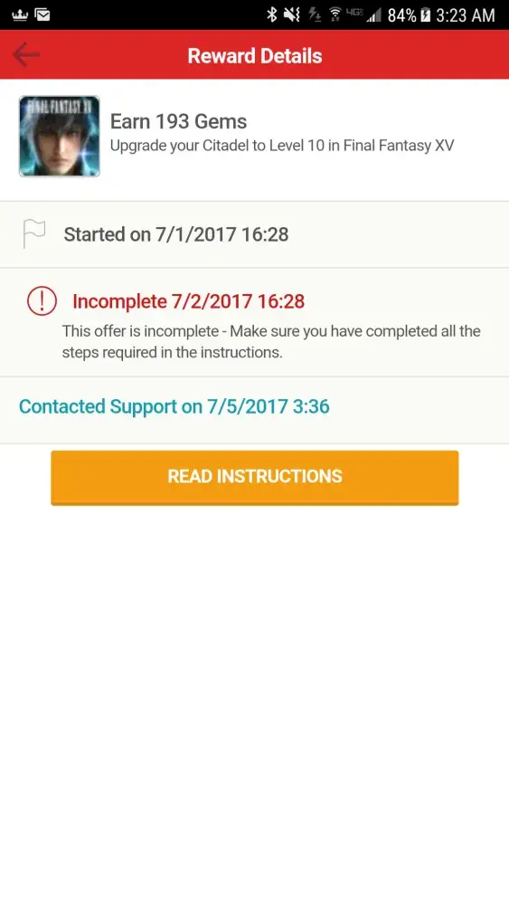 I completed the 2x 7340Greenbucks offer on July 2nd for Final Fantasy XV (Build a level 10 citadel), well before the event even ended. Still says INCOMPLETE on the tapjoy reward system.. I have sent numerous emails to Japjoy along with photographic evidence of completion. I have received zero response from tapjoy and no reward. I spent real money to complete this offer and over a dozen hours invested... I will be filing a formal complaint on every social site available and will never used tapjoy again after thus of notice fixed.. Totally in have over 15000 greenbucks that have nothing been paid, which is hundreds off dollars worth.. This seems too be a common thing this company does.