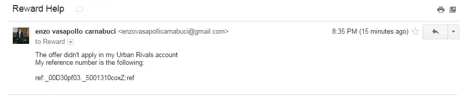 The day of the incident was may 24th of 2017. At the time of 07:25 pm I finished an offer which would reward me 356 credits in the online game called Urban Rivals. After one hour has passed, which was the delay of the offer to make the payment in my account, I didn't receive my credits. So, I decided to fill an request in order to reclaim my reward from the offer. They sent me that I already received my payment which did not happen. After a few more attempts of requesting my reward, nothing happened.