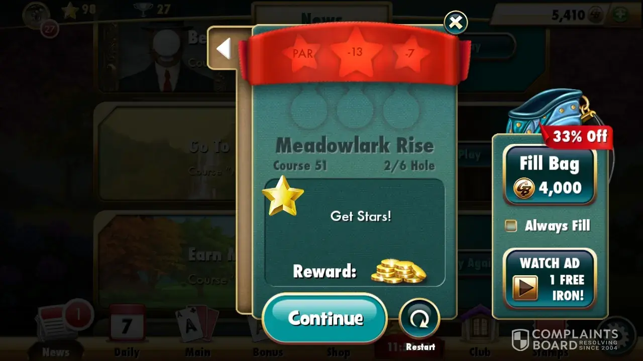 did not receive my reward for 8 bail mini clip. I played fairway solitaire and passed level 50 as asked