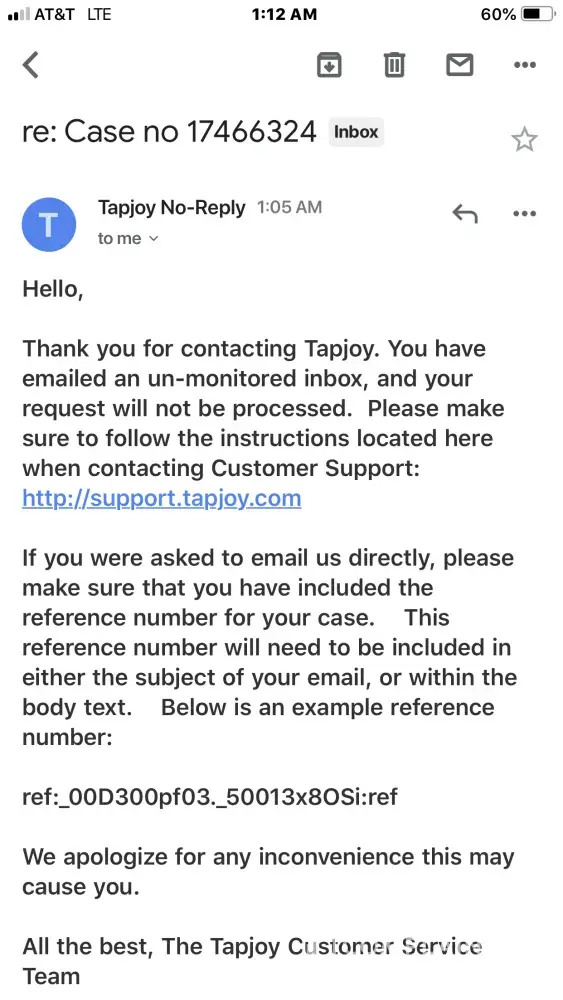 I have attempted multiple times to contact tapjoy regarding case no [protected].