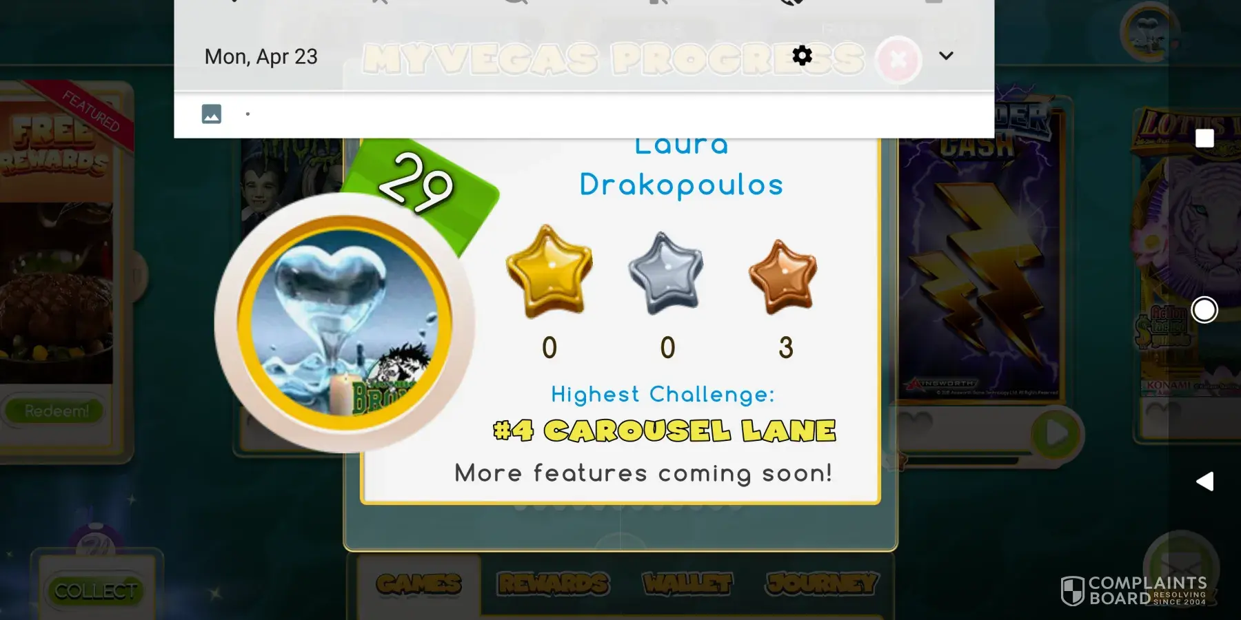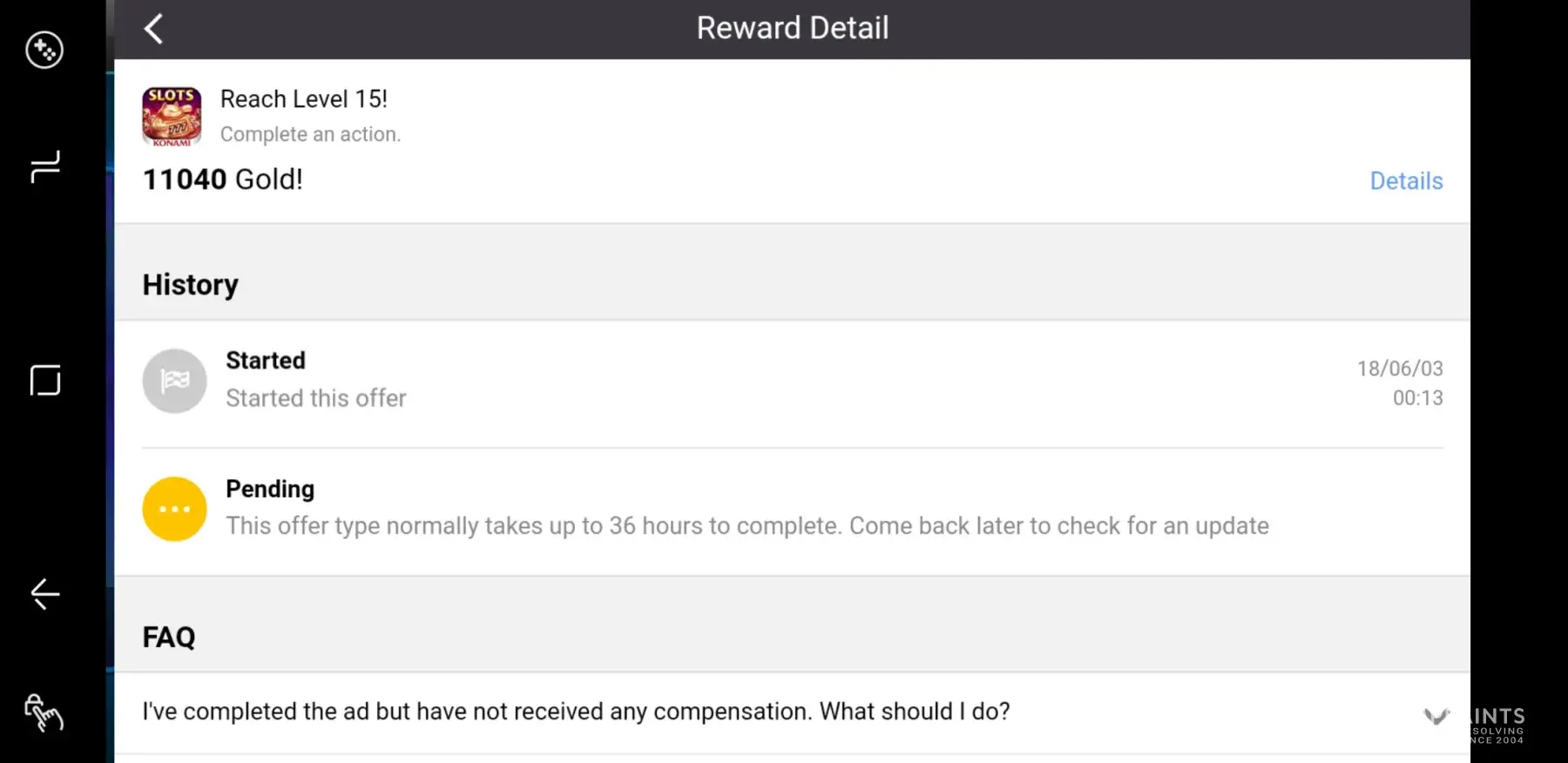 After nearly a month of no response and a "pending" status for my 16000 coin reward for reaching level 15 in Konami Slots I am still getting the run around from Madfinger and Konami. Please address case #[protected]. This sort of poor customer service is unacceptable.