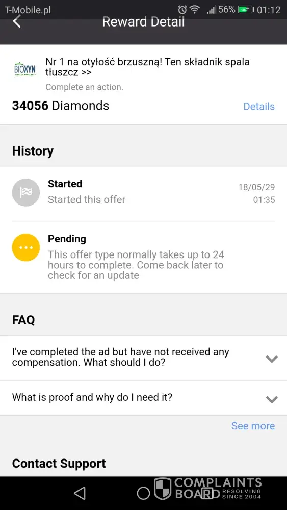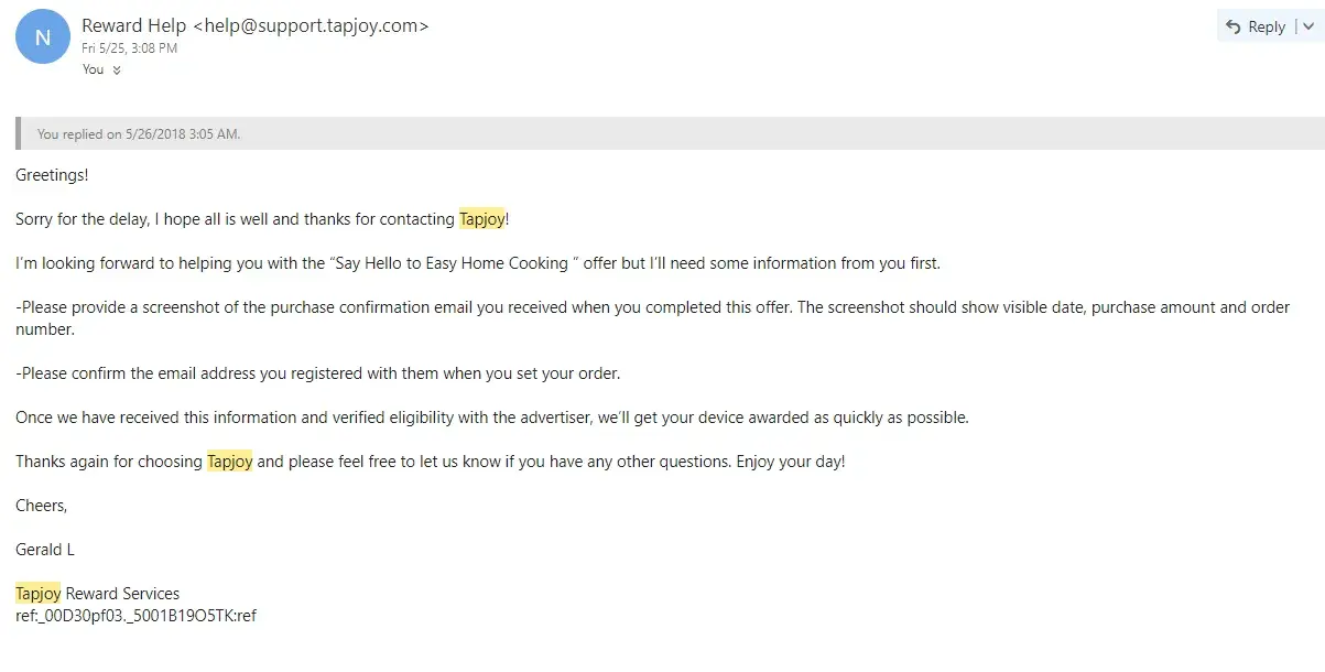 I have completed the pffer correctly, answered the automatic tapjoy email attaching also the proof of the completed offer and no answer. Tried to contact them many times, never received any support. Sad