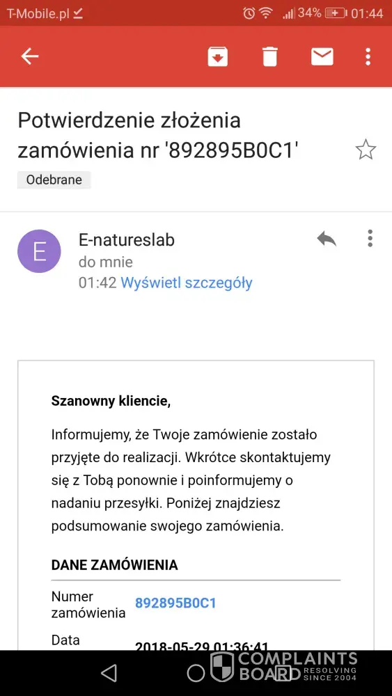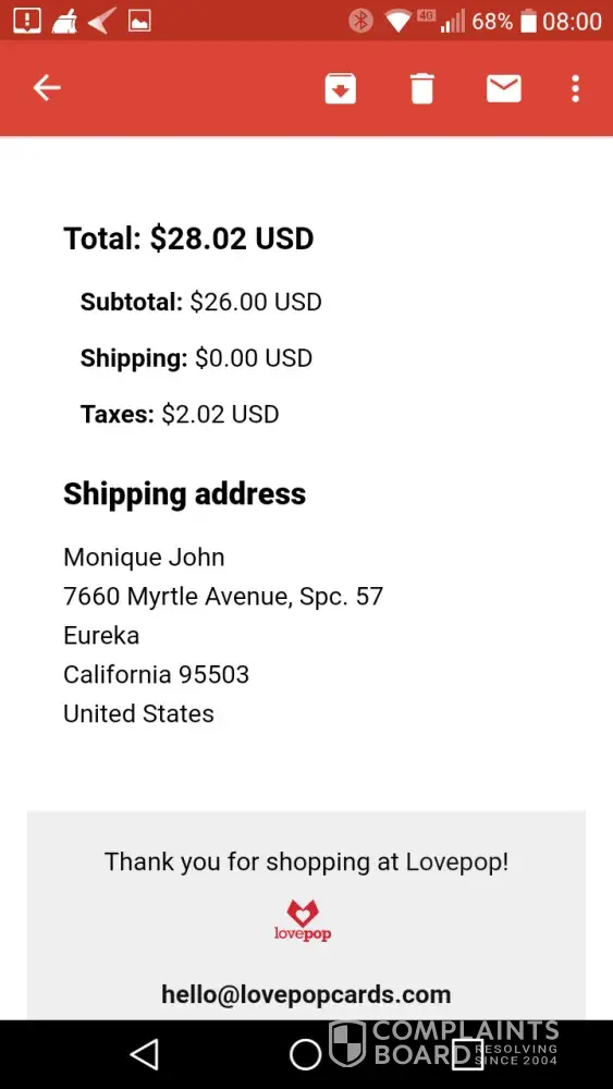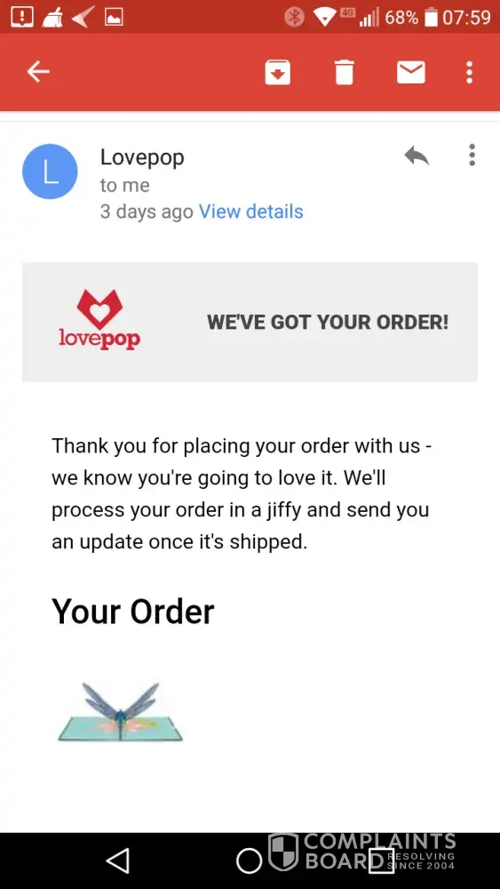 The complaint has been investigated and resolved to the customer’s satisfaction.