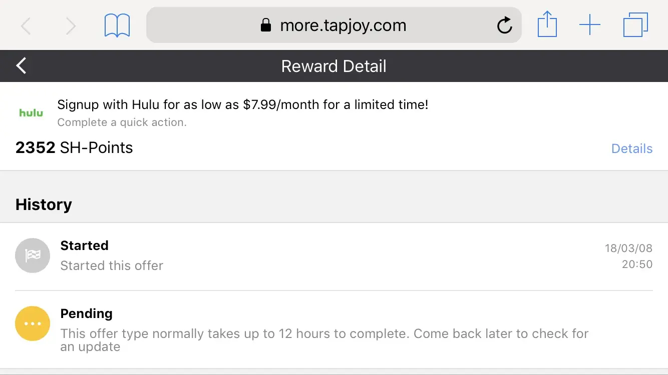 Tapjoy has refused to honor multiple offers with various moble promotions. I provided multiple emails and screenshots only to be told I the promotions will not be honored. Do not waste your time on them as they do not honor thier offers.