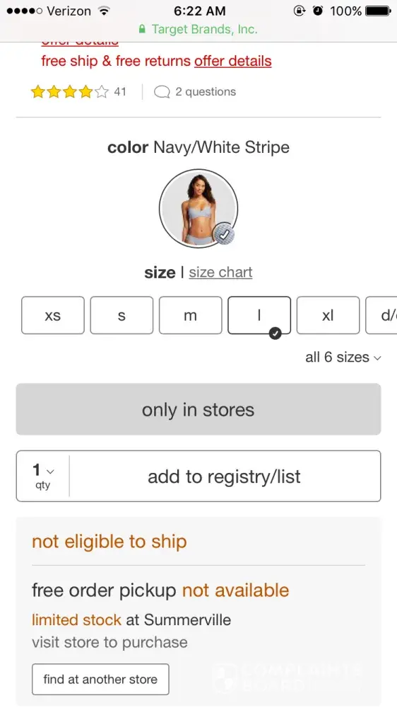 I found a swimsuit online marked for $4.48 and it said in store purchase only. It would not let me ship it or pick up in store. So I found he nearest store that it said I could purchase it from. Went to the store, found the swimwear went to the register and it indeed was NOT $4.48. I showed the cashier the online pricing for TARGET.com and she said no sorry that's online only. Well, it does not allow me to order it online, it clearly reads IN STORE PURCHASE ONLY. So how do you suppose I can buy this swimwear for $4.48 when it won't let me. So the manager came over and said oh yeah we don't price match target.com because we have our own merchandise. So then I said the same thing and he was not helpful at all. He told me I could purchase it for the retail price of $14.99 which it what it rang up for. I got tired of arguing my point of view so I asked for a discount and paid $12 for it. Bottom line is customer service SUCKED and it is FALSE ADVERTISING when it says I can buy in store at a specific location for $4.48 and it's actually a lie. I have pictures of the pricing online and pulled up the website and showed the manager and he still was like nah can't do it.
