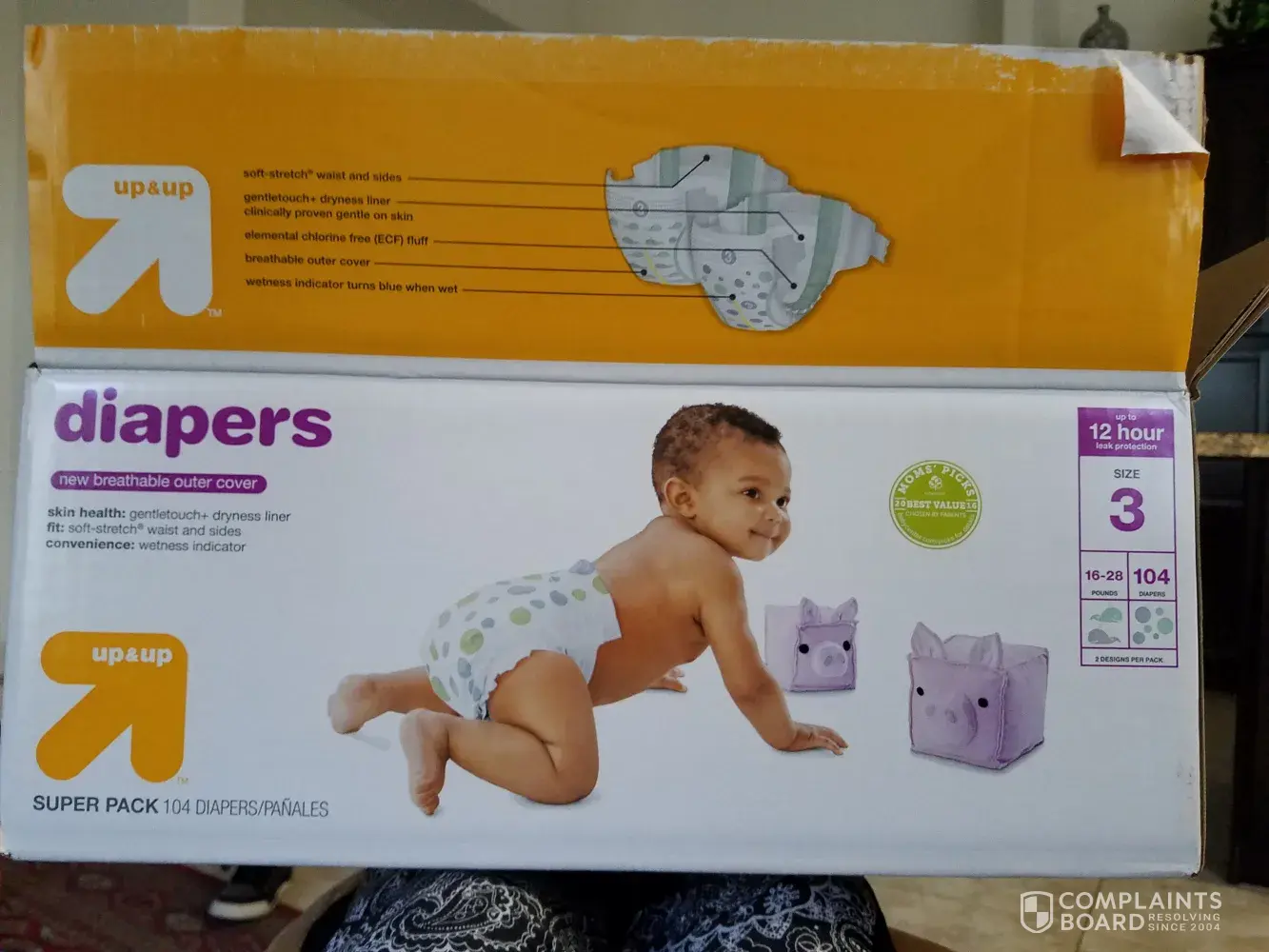I purchased it target brand diapers size 3 104. 12 hour leak protection as it is labeled. It is not our first time I purchase this box many times I think this is a defective one.