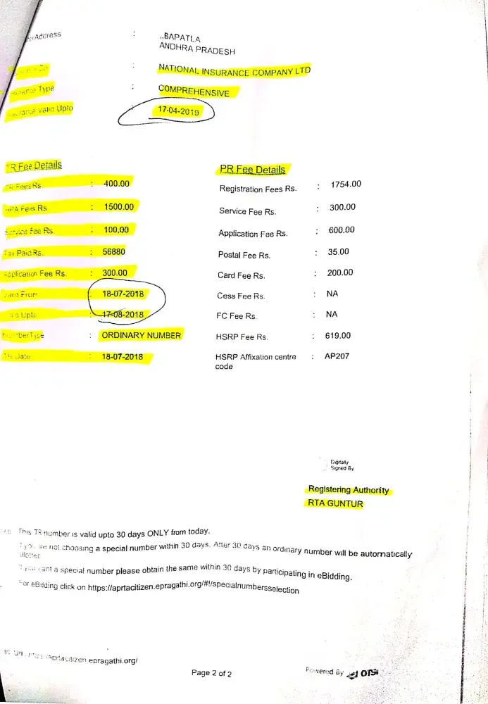 My said client mentioned that there was wrong provisional registration certificate sent by dealer on number selection and it is almost more than a month from the date of purchase, 23rd may, 2019 and the date of receiving the original certificate was on 23rd june, 2019 but due to the fault of dealer there was again mistake done in the pin code of the certificate of incorporation knowingly due to which my client has to face a lot of difficulties and harassment, because my client could not use the purchased car even after three (3) months of provisional registration expiry, owing to no valid registration certificate, apprehending challan and unclaimed insurance in case of accident, having certificate of registration no: pb10hc0557.