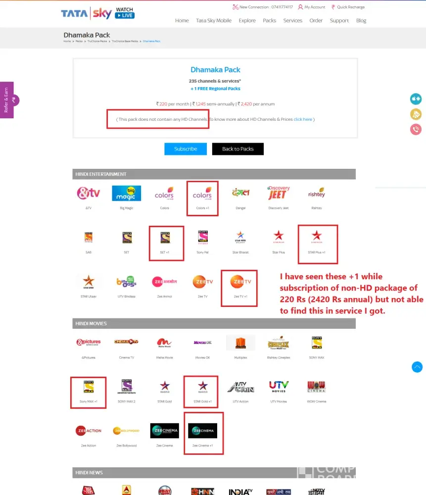 I think its my mistake to remain with TATA SKY who charges for Base pack and does not provide promised number of channels service as they want a heavy an additional HD service fees just to view some of Base pack channels for which I have already paid.