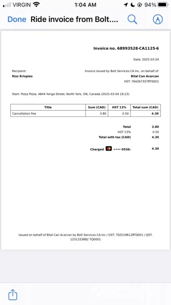 Read full complaintBolt Services Canada d/b/a Hopp Rides - Fraudultent driver