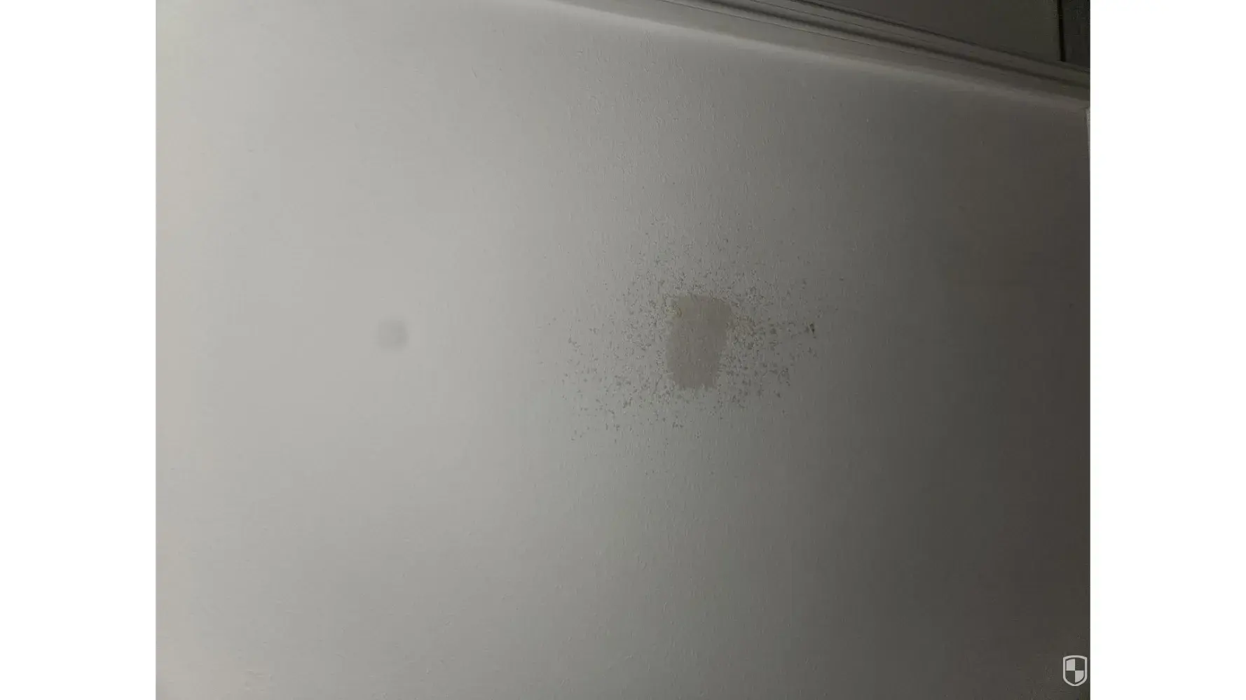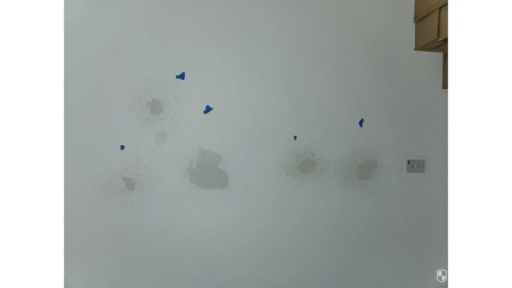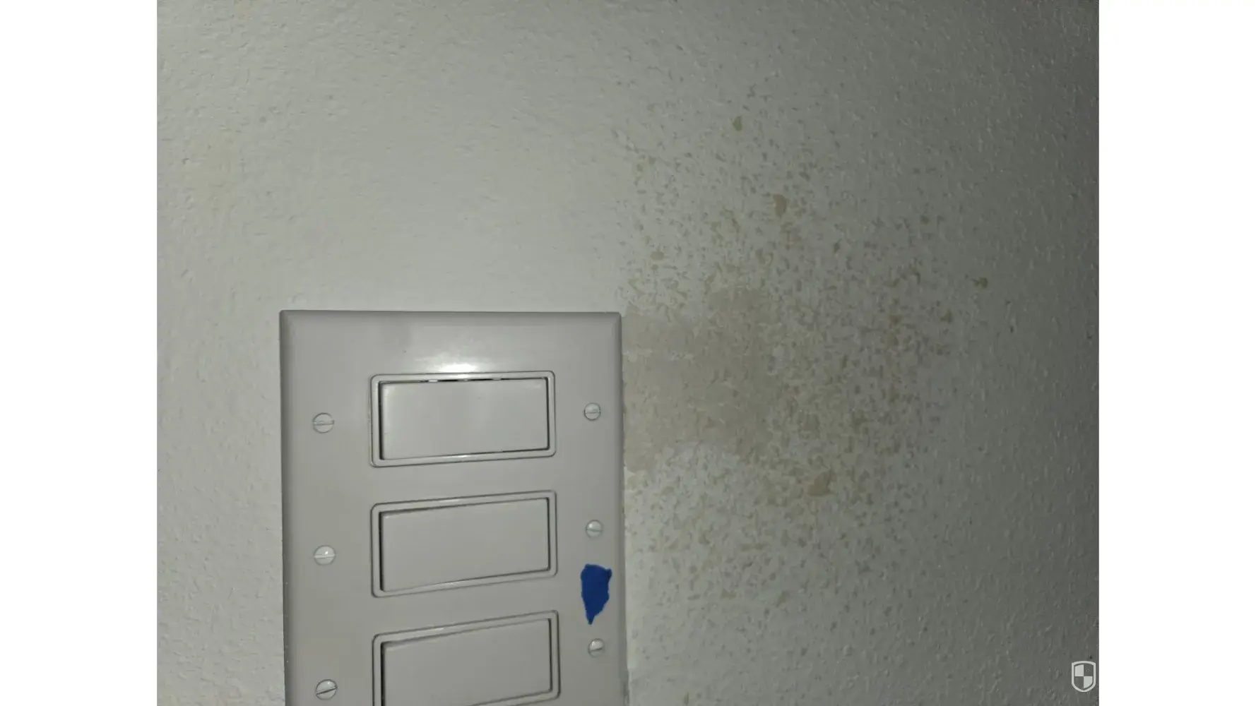 Rotting drywall from faulty shower install. Numerous patches of all interior walls. Exposed nails in drywall. Unpainted portions of walls. Untextured portions of walls. Damaged base boards. Faulty garage door.