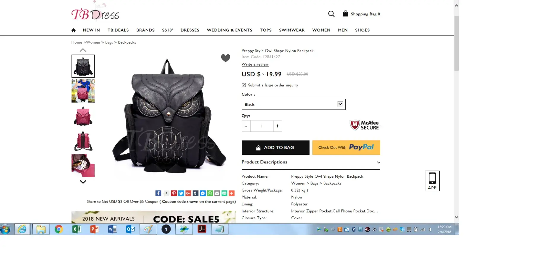 I am not happy with TB dress service delivery. I ordered an item on 1/9/18. It is now 2/4/18, and I am still waiting for this product to arrive from TB dress. I received a bogus shipment notice informing me that the item left China and was shipped out on 1/31/18 (3 weeks after I placed the order). It is 2/4/18 and I am still waiting for the delivery.
