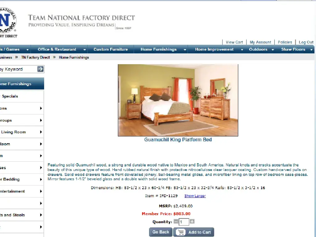 You save $1, 606.00 from the retail price! Is this not enough savings? Can you find a cheaper price on this (brand new) bed as a non Team National member? Good luck with that :-)