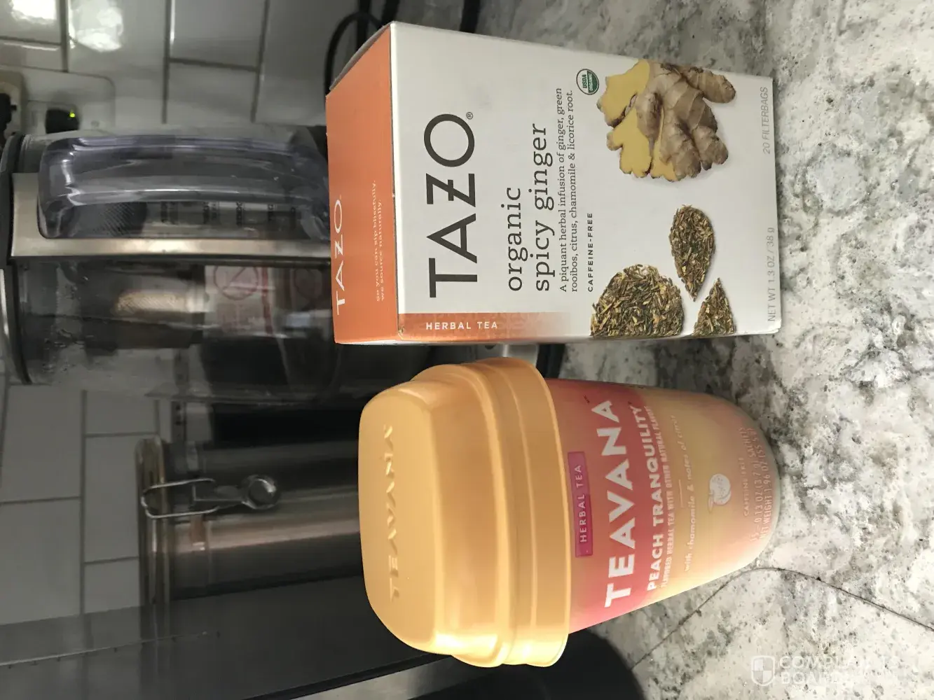 My husband recently purchased Teavana Jade Citrus Mint and Peach Tranquility teabags at a local super market and the plastic outer packaging is just terrible. 1. It's plastic. 2. The design is unstable and falls over every time I reach for something in my pantry .