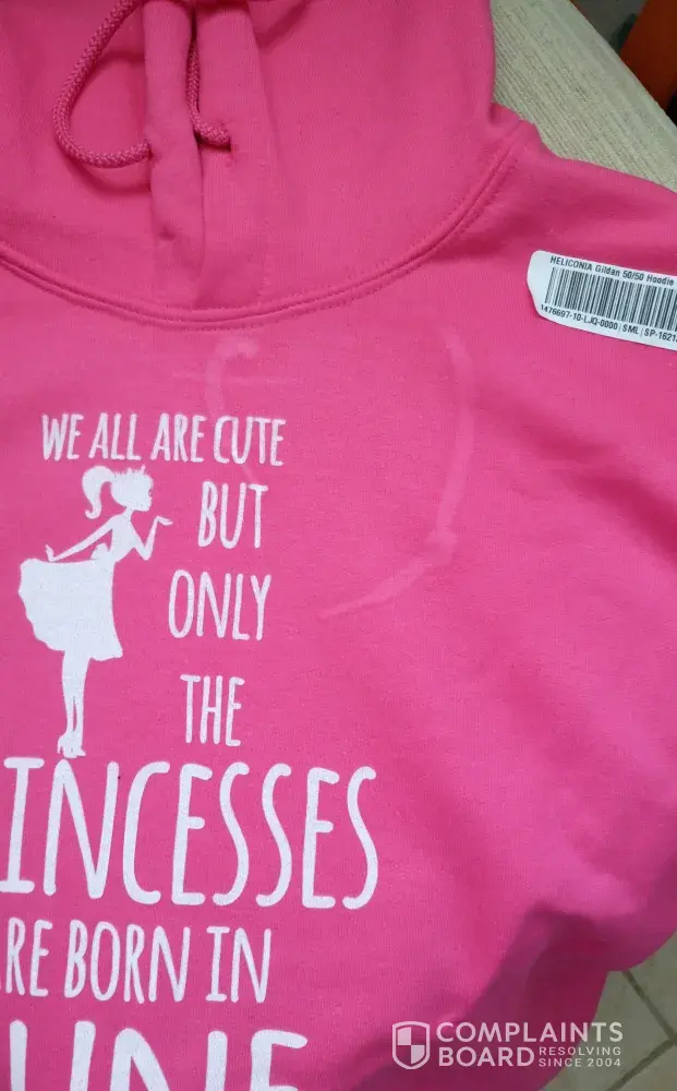 I immediately contacted TeeChip Support and reported the flaw. I received an email in which I was sent a website address to fill in a complaint. However, when I filled everything in it didn't work. I have not received any response since then. I am very dissapointed. I am sending you the photo of the hoodie and emails from TeeChip. I want my product to be replaced by a new one. I am waiting for your reply.