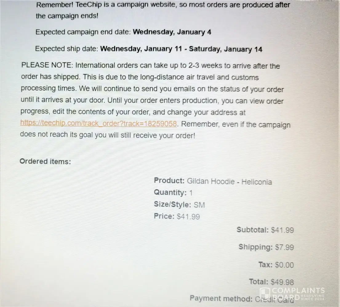 Confirmation order email : https://teechip.com/track_order?track=11315561