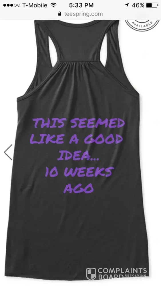 This company was recommended by someone I listen to on YouTube. I too have filed a complaint against Teespring and I will no longer listen to the person on YouTube...