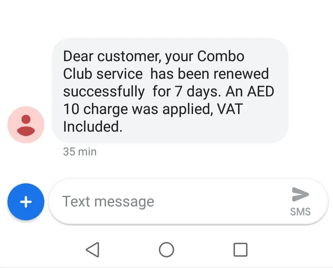 First a fall I didn't subscribe this service some how it become active and deducted 8 aed from my account ok no problem I just cancle this service and got confirmation that ur subscription has been canceled after that I put 5 aed in my account just to check after got confirmation of cancellation they dedcuted 4.85 aed again again I go through same cancellation process and I shocked when I got msg that you are not subscribed to the package after this again I recharge for 5 aed yesterday and after 1 hr I got msg that ur service has been renewed which I never applied or request so I request you to please help me cause my this number is already shared in market with customers.