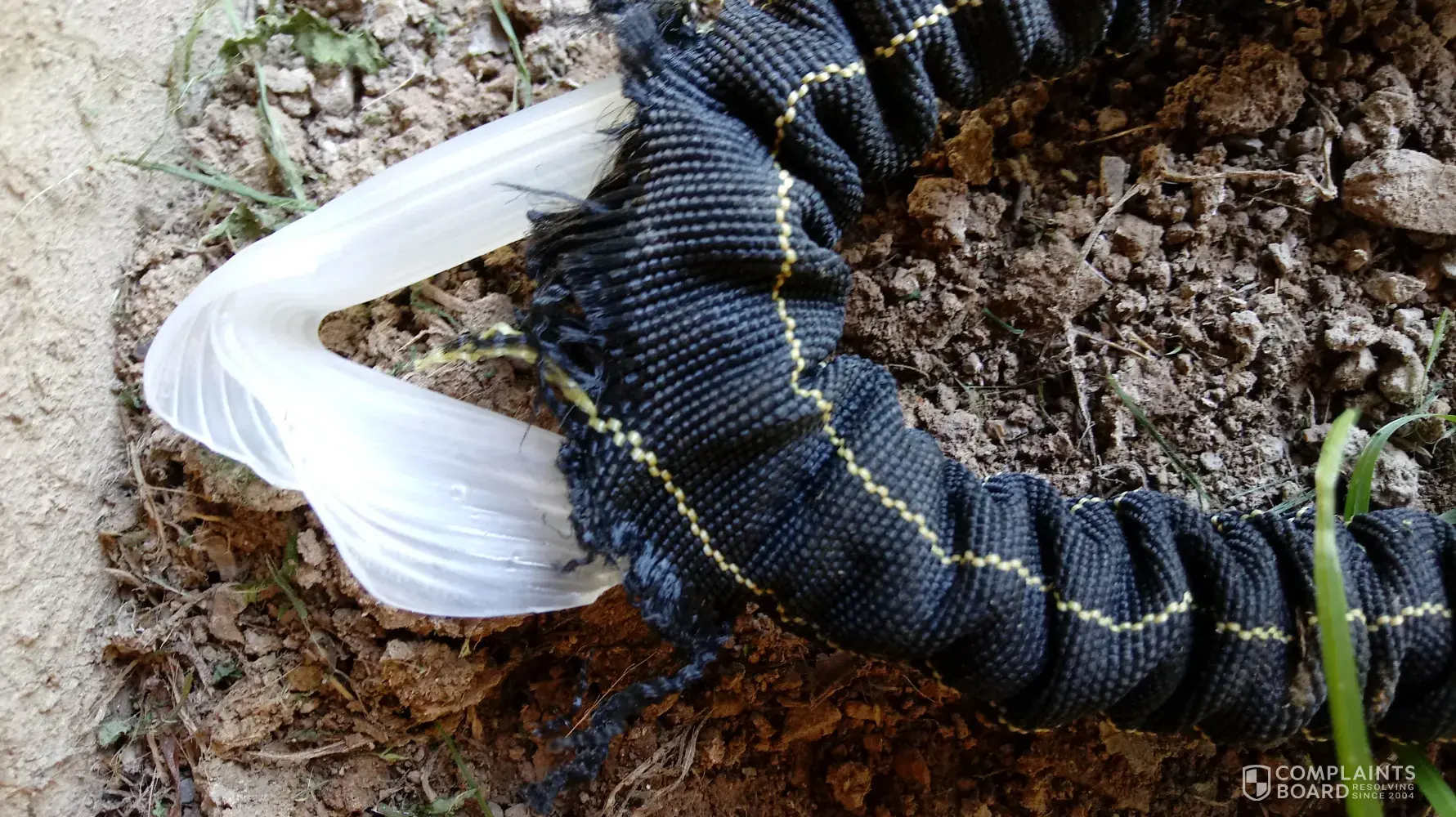 it was used the casing got a small spot on it, kind of like a crack. Then the next time we used it the inner tube swelled up and burst. The hose was practically brand new and was not abused. When completely drained and deflated it was kept in a paper bag in the garage. I feel certain there was a defect in it. It was suppose to have an "exclusive" Solar Stripe - LONGER LIFE TECHNOLOGY. I have the receipt and the card board picture and info that came with it. Would appreciate some help here, mainly in a replacement.