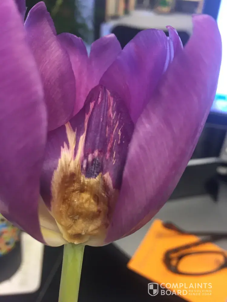 I had paid for purple Tulips delivered to my wife on Valentines day. I paid extra for the premium arrangement. My wife received PINK Tulips arrangement smaller than your standard. The Tulips are filled with GRASS filler since their was only 12 Tulips V.s over 30 and no grass filler in the picture I purchased off of. The vase had no purple ribbon attached like the picture. The Tulips are wilting and have fungus all over them. I have tried for 2 days now to get customer service to answer the phone. I only get automated response that due to high call volume you have to wait longer to speak to someone. After reading your reviews I understand why. Teleflora may be the worst reviewed company in history. what a scam ! I wish I would have read the reviews before ordering. I hope to get the word out and I hope everyone reads before ordering BUYER BEWAR. put this company out of business