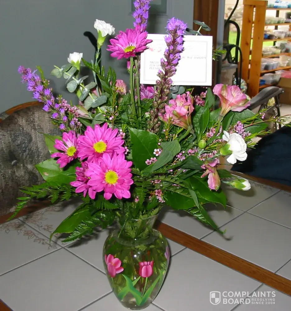 Not sure if this will help you in the future or not, but here is a suggestion on perhaps avoiding similar problems. Find a florist - not an 800 number or an online service, but a real bricks and mortar florist in or near the city where you wish your order to be delivered. All those flowers you order through Teleflora, FTD, 800 Flowers, etc... are being created and delivered by local florists anyway (unless you get the box delivery) and they can only deliver what orders they receive. For the most part you can get something identical to the pictures you see on line and if the florist does have to substitute anything, they'll generally tell you right up front. Plus, you've got a small business you're dealing with and your chances of speaking with the owner are much much better, in case there is a problem. Most florists are regular people who shop just like you and are concerned about value given for money received. If you like, Teleflora and FTD have listings online that will direct you to real live local florists. I don't know what FTD's site is called, but Teleflora calls it Find a Florist. Be careful when searching online, though, as many so called "florists" are really just call centers. I'd suggest you confirm they are real florists by verifying their address in some way. This has been my basic rule of thumb with flowers for the last 30 years. I have to admit that I have made some purchases from Teleflora.com and had excellent success. Of course, once I discovered who the florists were that delivered the good stuff, their name went into my database and I call them directly now. Better service, usually a better final product and like I said, a name and a face to speak with just in case of a problem. Good luck - hope it helps.