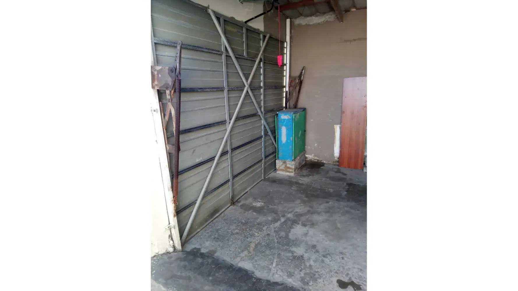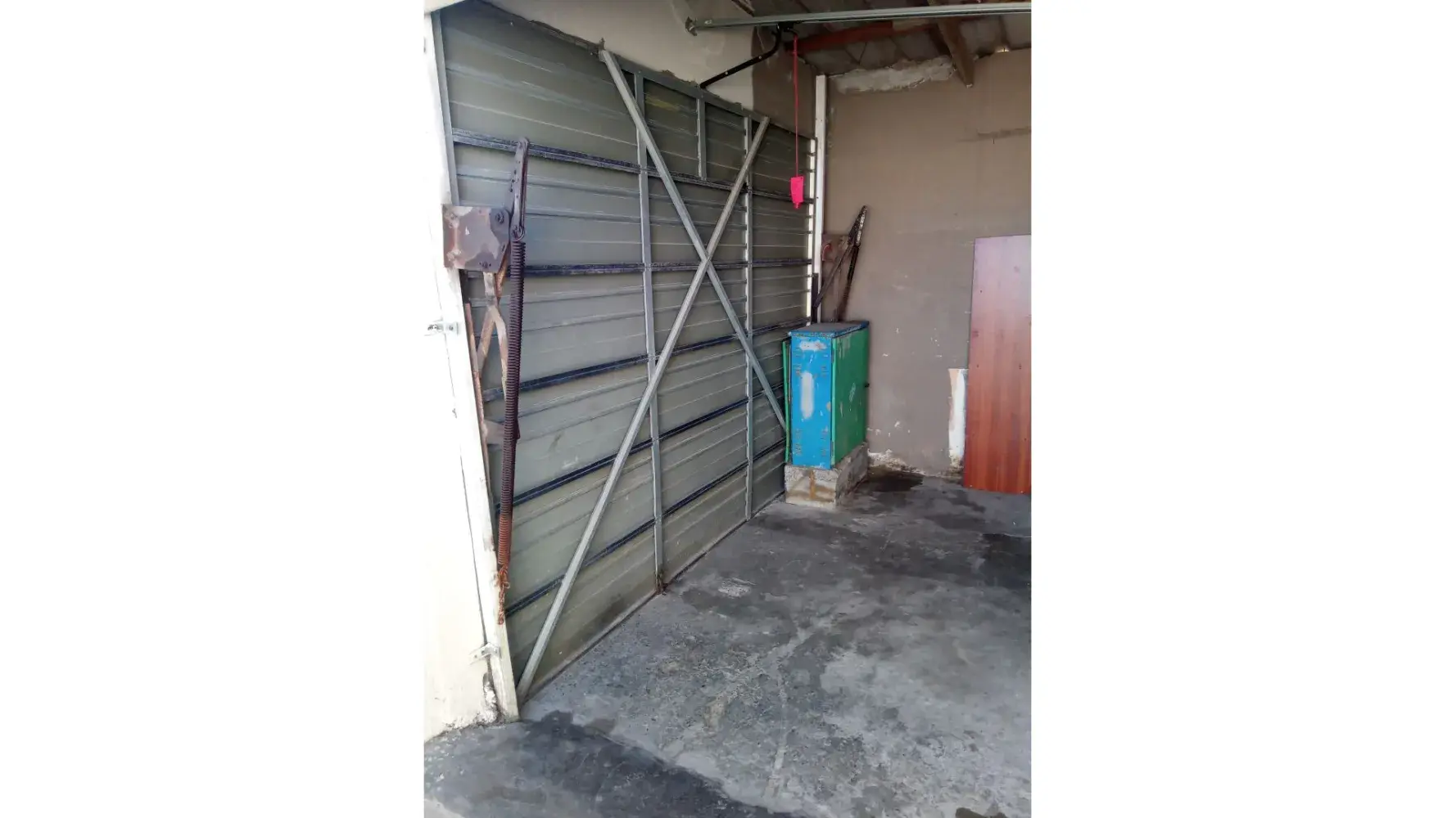The box is inside my garage door also blocking and making it very difficult for our cars to move inside.