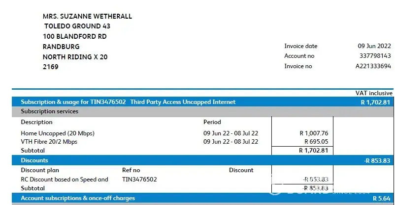 I just received my account and Telkom wants to charge me an amount of R202.70 debit order rejection fee.