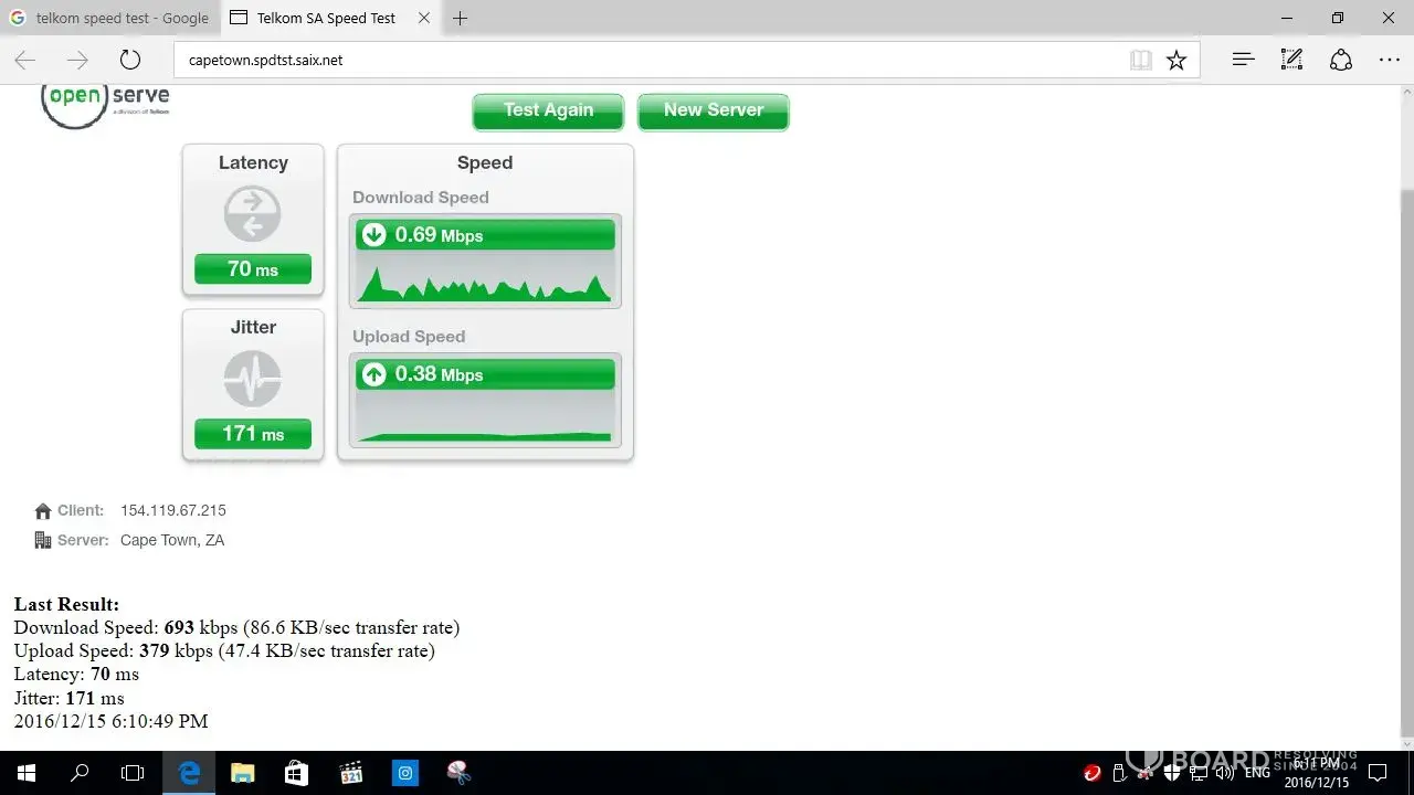 Been experiencing intermittent adsl speeds over the past few months. I logged a fault last month, when the technician tested the line, it was fine. When I run a tests via speedtest.Net I receive speeds ranging from 0.10mbps to 1.86mbps on a 2mb line. I have contact my service provider who has given me a new account and tested it and all is okay on their side. Kindly assist me as I cannot pay for a 2mb adsl line and receive speeds below 1.80mbps!