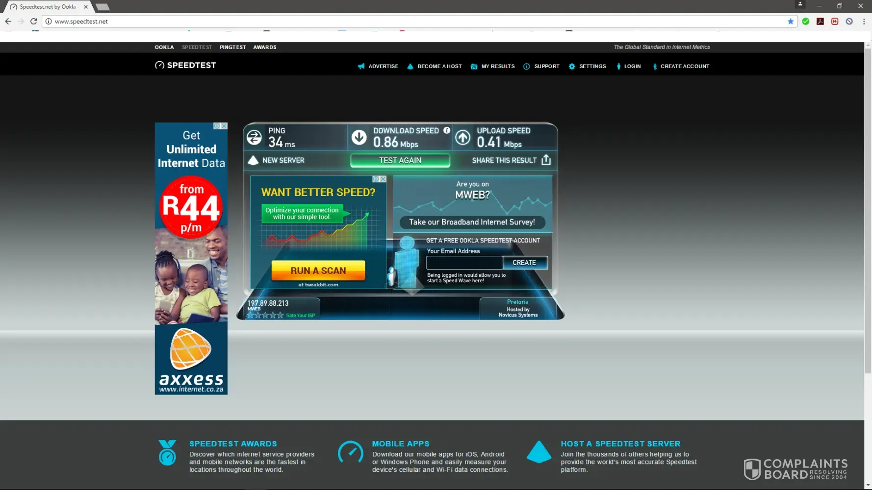 In the first month, I got speeds of around 8mb/s. Now in month 5, the service has degraded so much, that I currently only receive 0.6mb/s speeds.