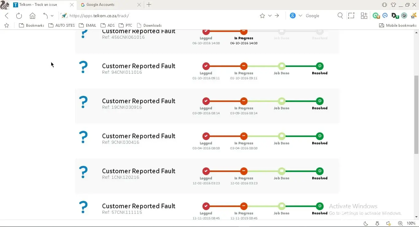 Let me quote the following recent problem call reference number to telkom to restore the service as per contract: