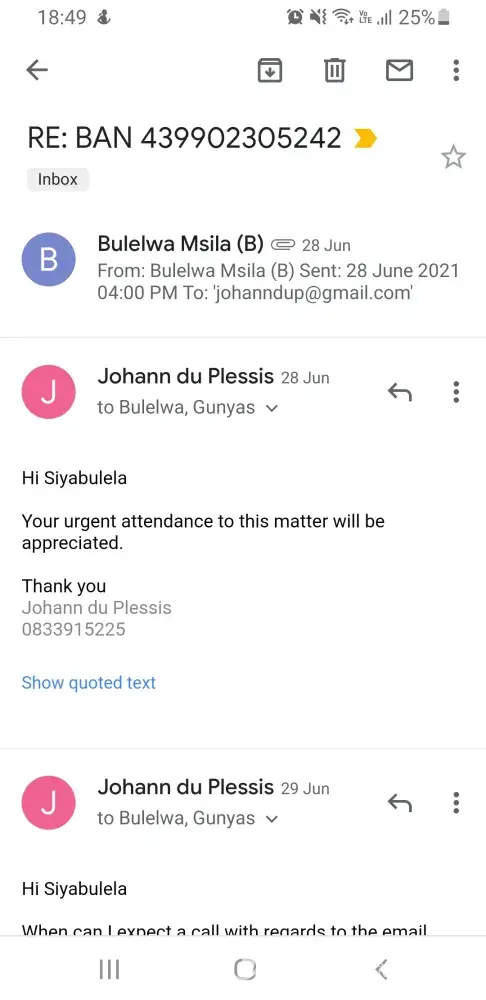I want this to be sorted attended to promptly, because whether I am a client of yours or was a client of yours, you should provide good service.