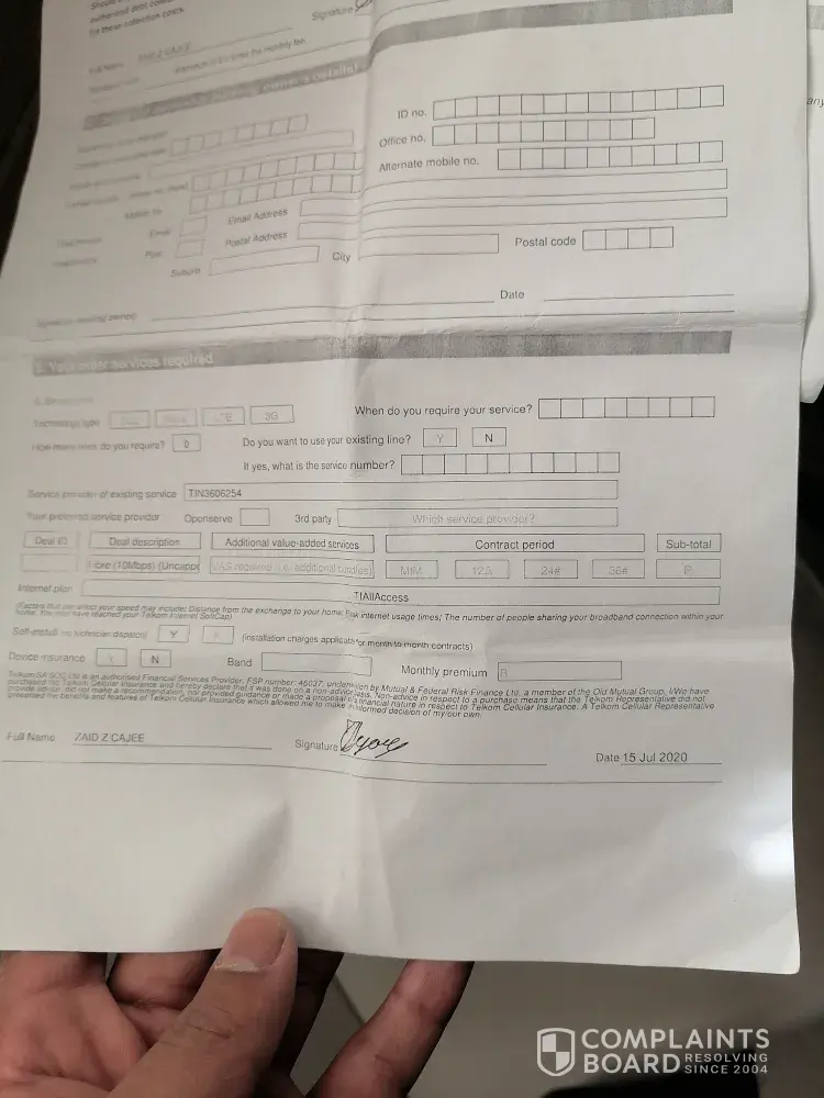 Desired outcome: Ending of fraudulent contracts and removal of my banking details from Telkom systems.