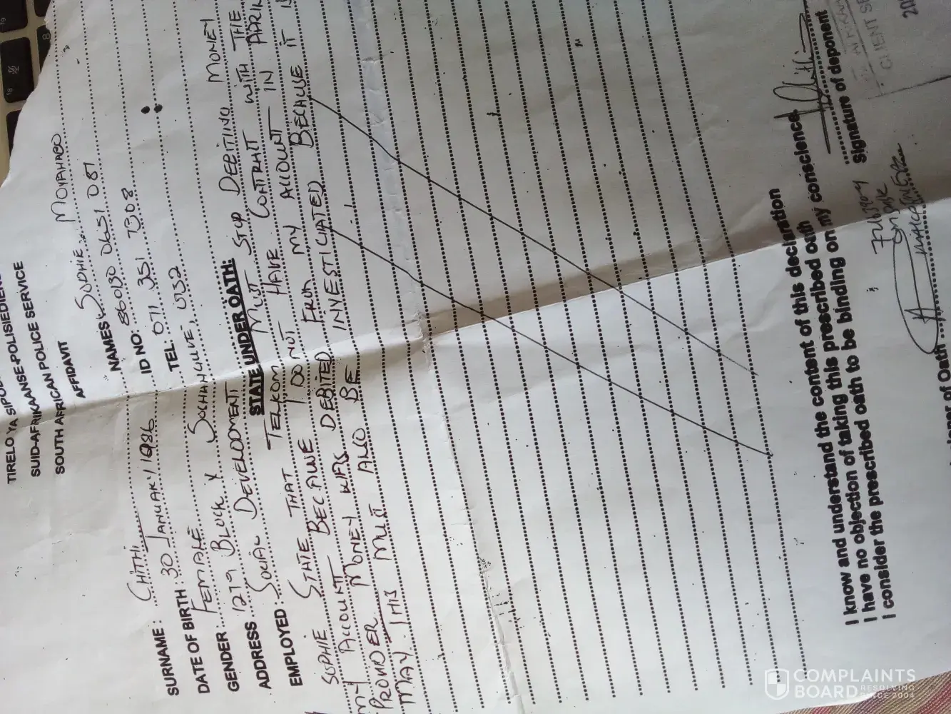 Desired outcome: I want my money back and I want everything thats in my name under Telkom cancelled