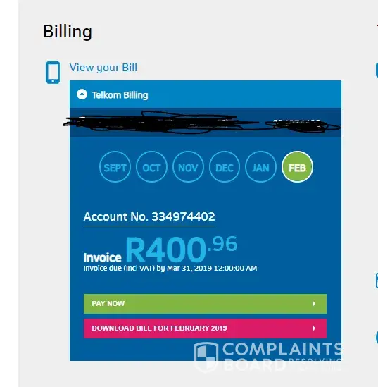 Please find attached an Invoice I received from Telkom - in it I have been billed for 10 Feb 2019 Invoice for February [protected] R 428.08