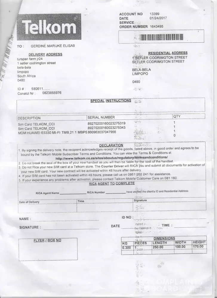 Telkom cancelled my phone and put me on a sim only contract