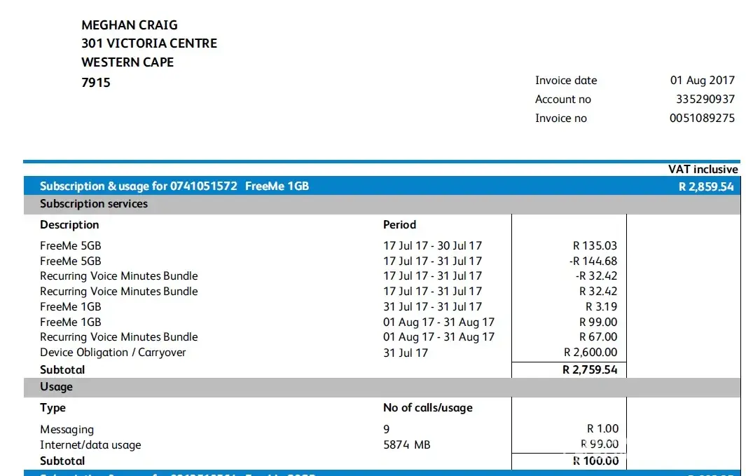 • Debit Order: I clearly indicated to the Consultant I do not want to be on debit order as I prefer to monitor my bill, despite