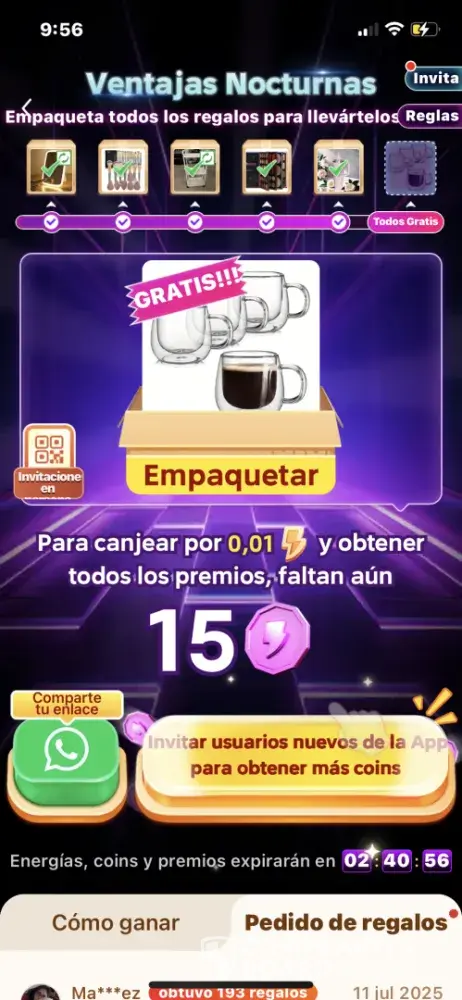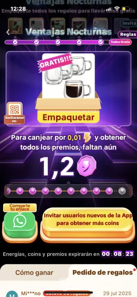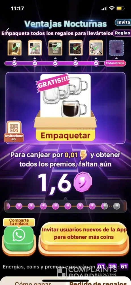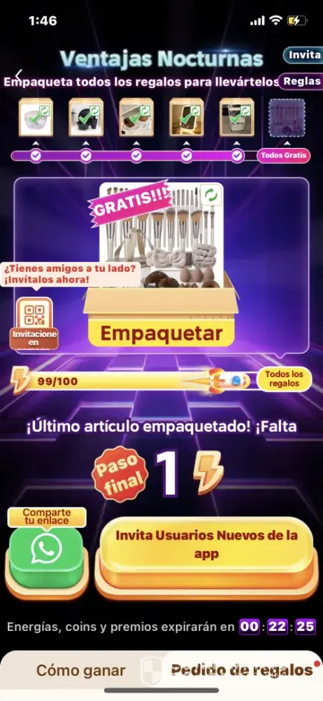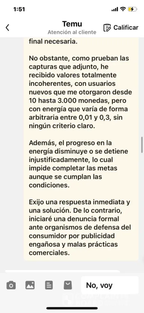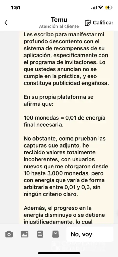 Temu ofrece premios por invitar gente, pero el sistema es engañoso. A medida que te acercás al 100%, las recompensas se vuelven inalcanzables. Te usan para promocionar la app y después no te dan nada. Es publicidad falsa y manipuladora,
