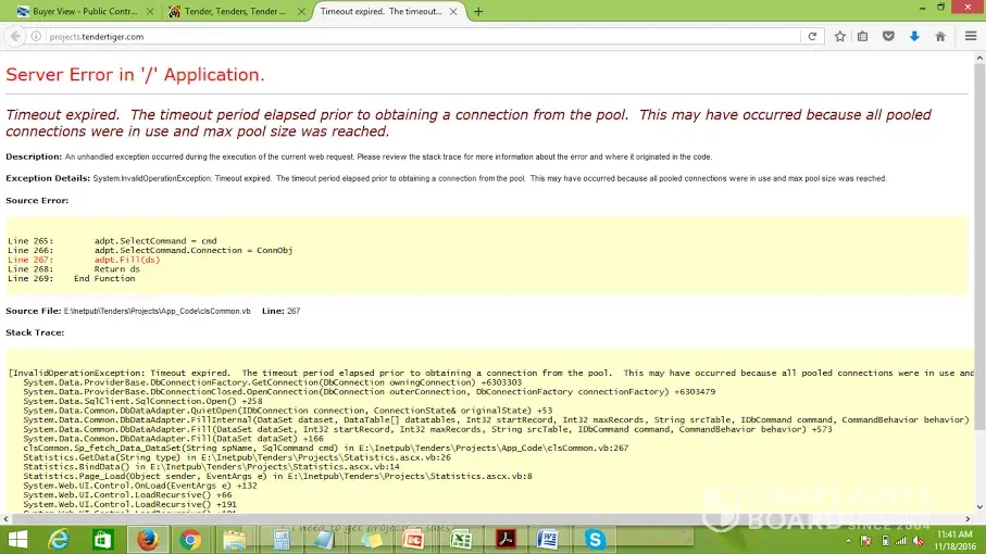 We don't agree to this false and fraudulent information spread by our competitor .There is no iota of truth in this and the screen shot is take from world file or generated from some software tools .Our company is cmmi3 certificate and very reputed in market. If still u have any problem please call or mail to care@tendertiger.com we will solve your problem but please do not spread false information about our company.
