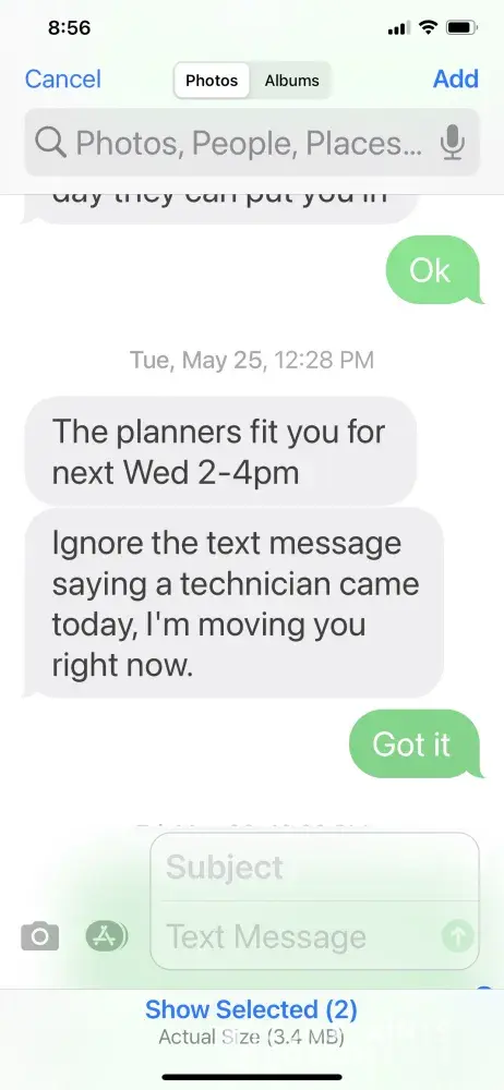 Desired outcome: I would really like the service done in my attic - I paid for it and I have grandchildren visiting soon, so I really don't want this done too close in time to when they visit.