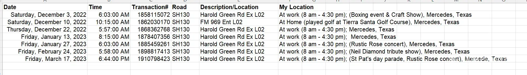 Friday, January 13, 2023 8:15:00 AM [protected] SH130 Harold Green Rd Ex L02 At work