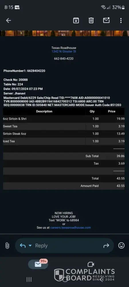 Read full complaintIs Texas Roadhouse Legit?
